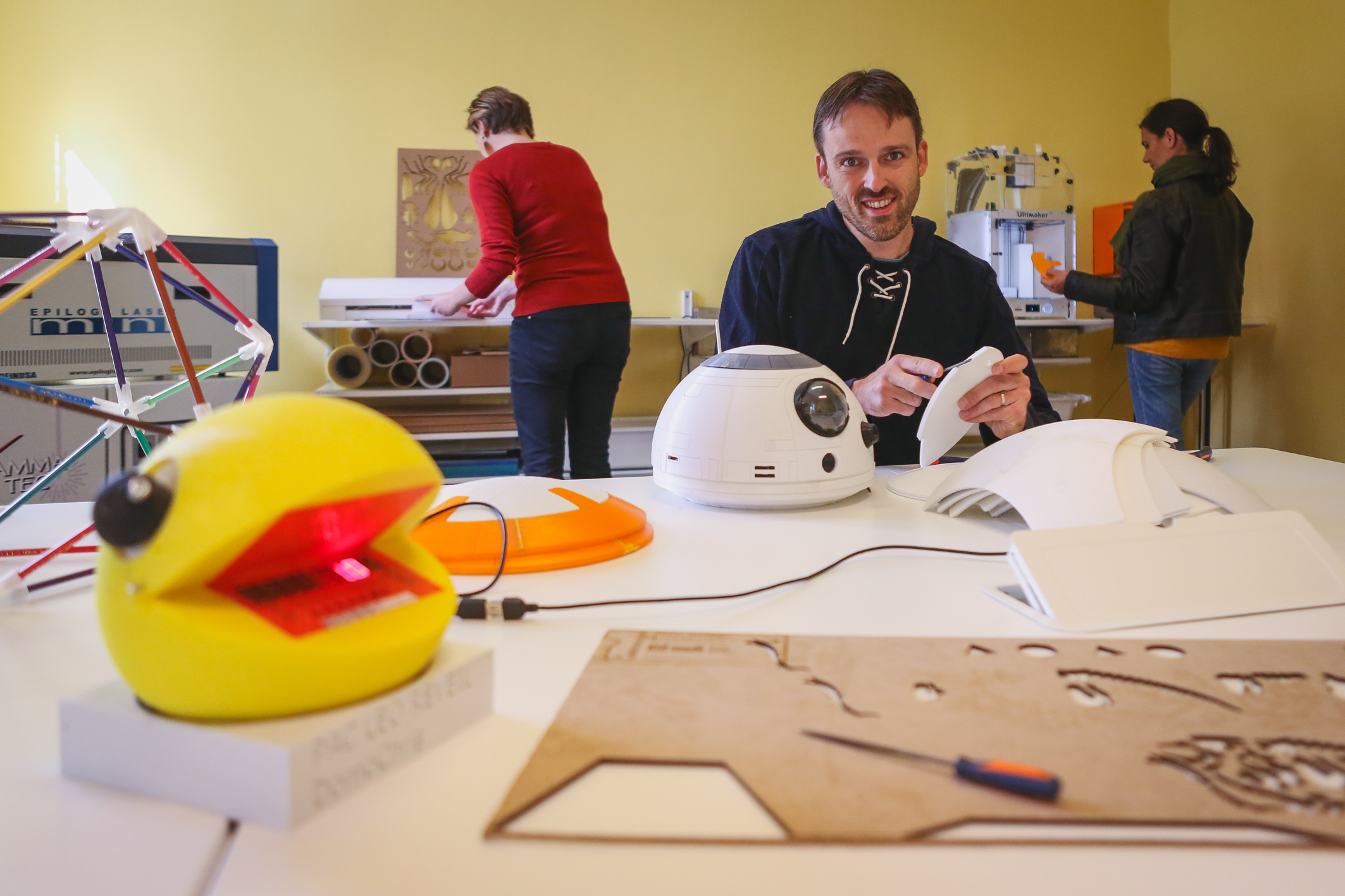 Le Kaléidoscope est aussi une micro-usine urbaine labelisée Manufacture de Proximité. Professionnels et amateurs sont accompagnés de la conception/modélisation à la réalisation de leur projet. Le Kaléidoscope facilite l’accès à des espaces de travail et aux innovations technologiques (machines-outils, imprimantes et scanner 3D, découpeuse laser…).